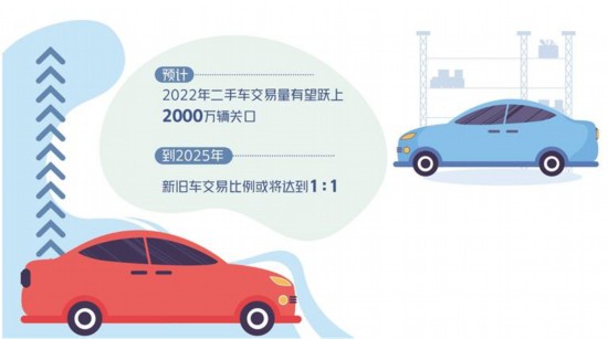 “预计,2022年二手车交易量有望跃上2000万辆关口。到2025年,新旧车交易比例或将达到1∶1。”郎学红此前在《2021—2022中国汽车流通行业蓝皮书》的发布会上,代表协会发布了行业预测。