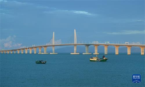 习近平总书记专程前来,亲自宣布大桥开通。总书记驱车沿桥巡览,登岛远眺,感慨万千:“这是一座圆梦桥、同心桥、自信桥、复兴桥。”