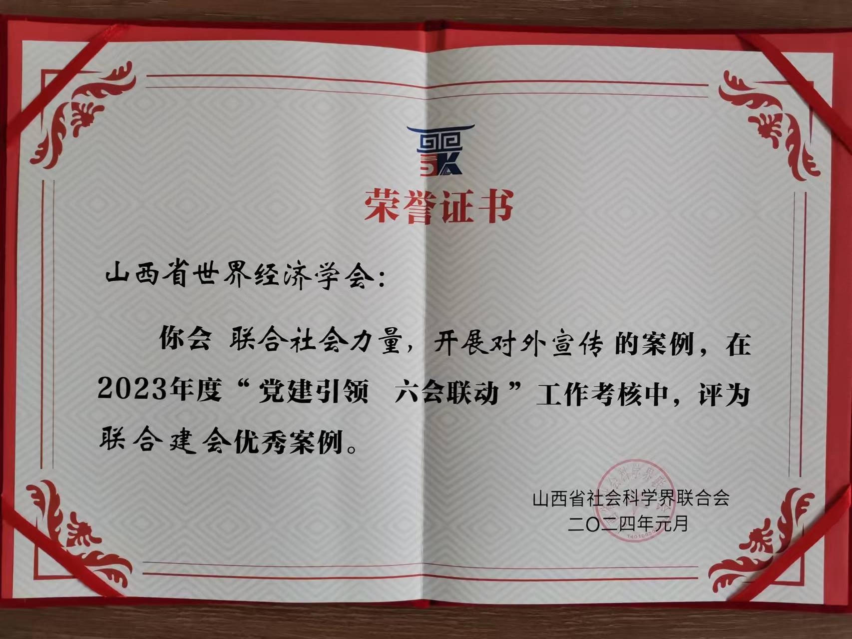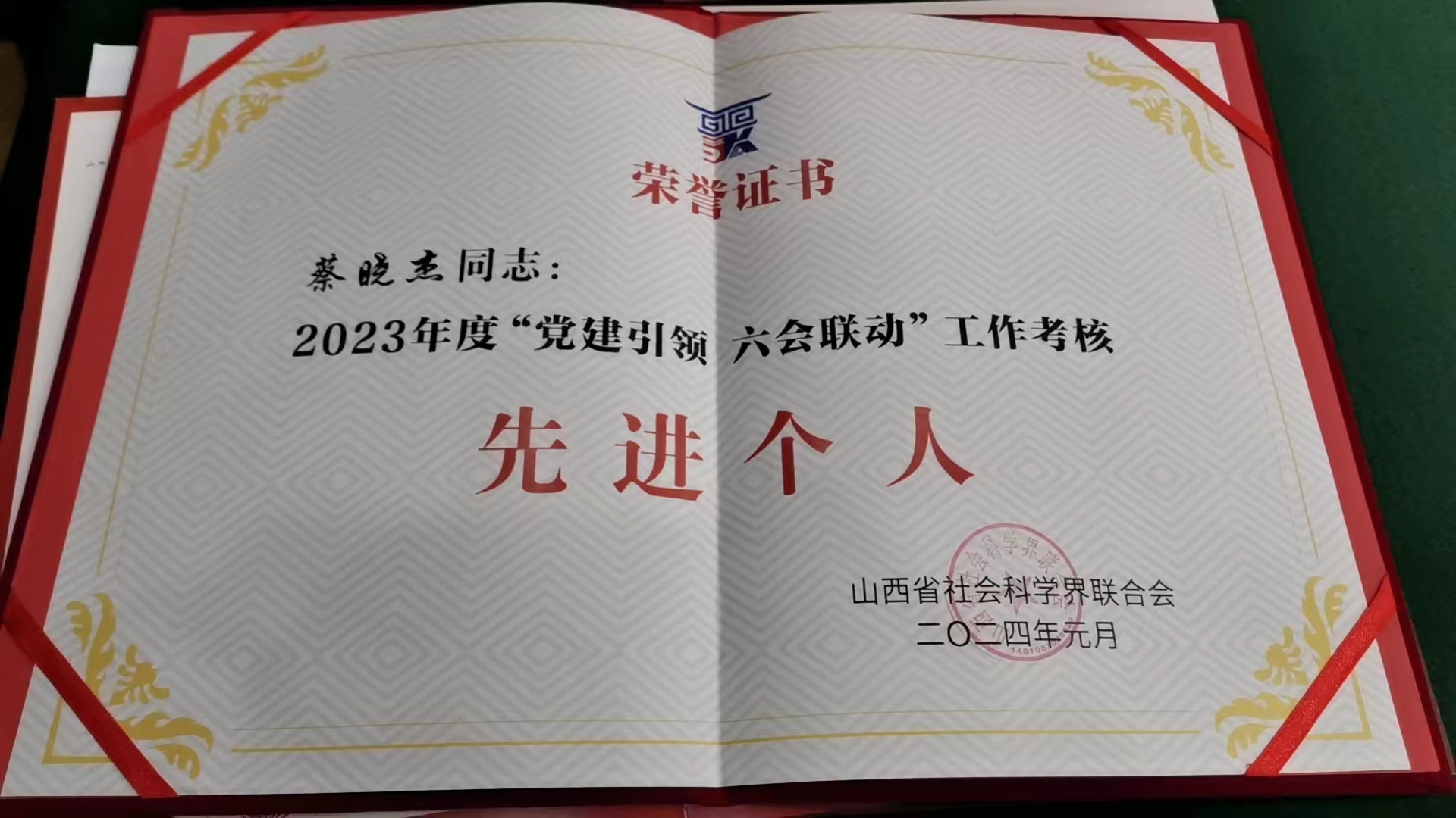 山西省世界经济学会荣膺山西省社科类社会组织 2023年度“党建引领 六会联动”优秀案例荣誉 蔡晓杰同志获“先进个人”称号