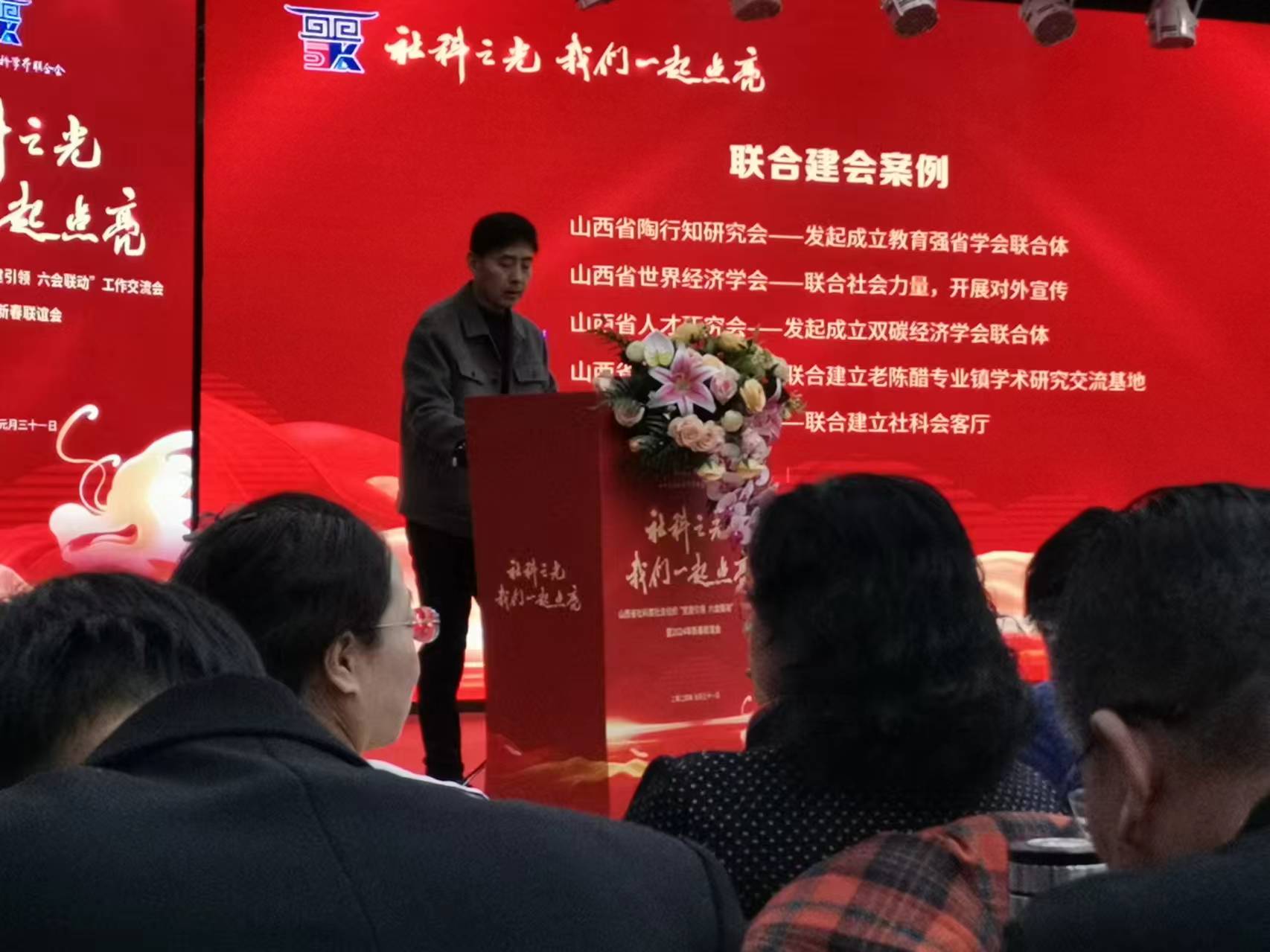 1月31日,山西省社科类社会组织“党建引领 六会联动”工作交流会暨2024年新春联谊会在太原隆重举行。本次会议主题为“社科之光·我们一起点亮”,旨在为进一步发挥社科类社会组织和学会工作者在高质量发展中的积极作用。参加会议的有山西省社科联党组书记、常务副主席张云泽,社科联党组成员、副主席吕安生,社科联副主席、社科类社会组织行业党委书记郝建新,社科联一级调研员、学会部主任、社科类社会组织行业党委副书记谢春玲等领导和我省各学会、研究会、协会、民办社科研究机构相关负责人等100余人。