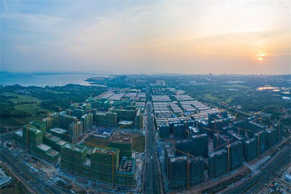 这是2022年9月26日在海南洋浦经济开发区拍摄的建设中的东部生活区(无人机全景照片)。新华社记者蒲晓旭 摄